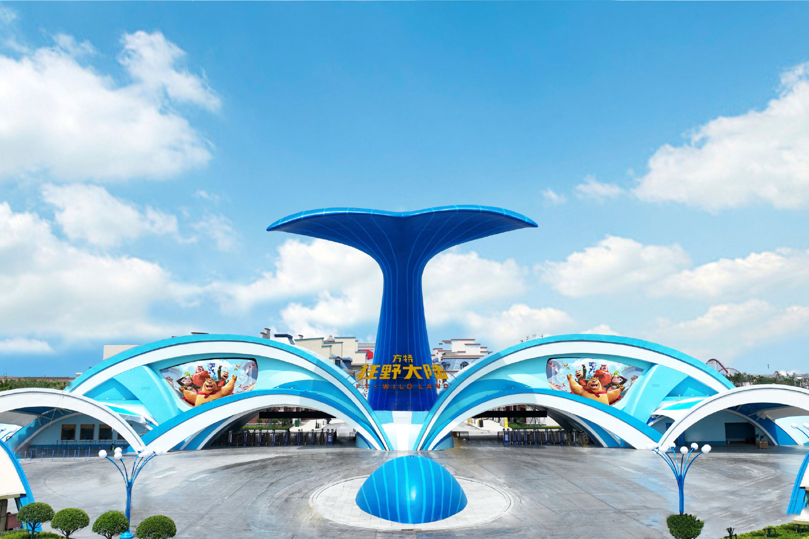阳光明媚的周末,我和爸爸妈妈一起去方特狂野大陆主题乐园玩。我们开车到乐园门口,这里早就人山人海了,入口处的鲸鱼尾巴造型特别奇特,一下子就吸引了我。进了园,我还和真人扮演的光头强、熊大、熊二合了影。