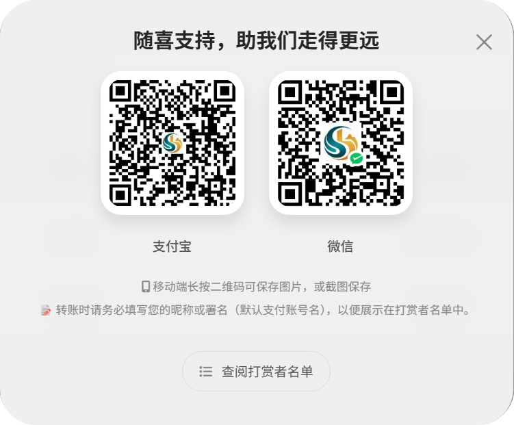 - 公开透明。所有打赏金额和打赏者(匿名除外)都会在名单页面公示,钱花到哪里也会定期说明。