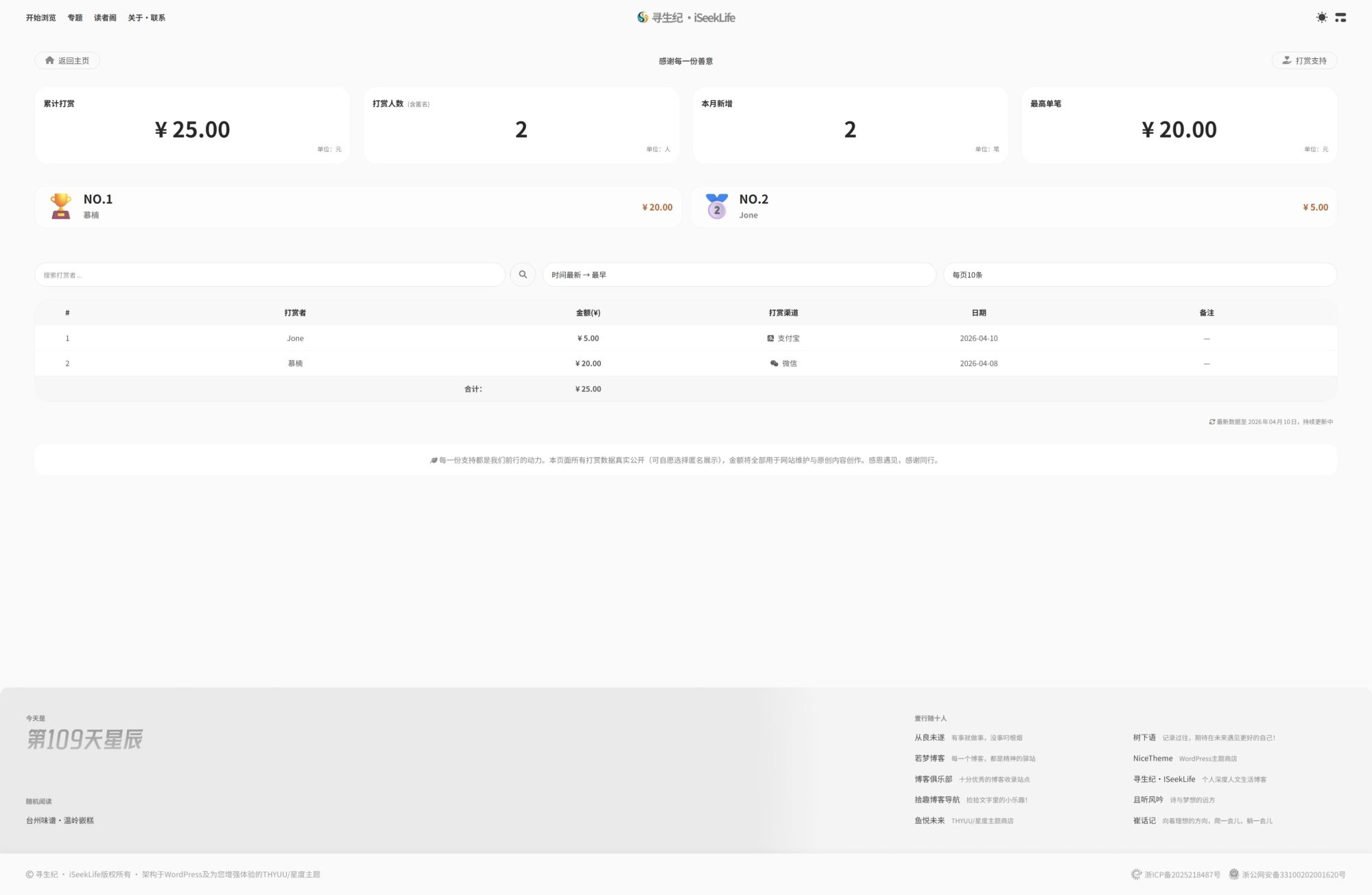 打赏者名单页面地址:https://www.iseeklife.com/reward。
