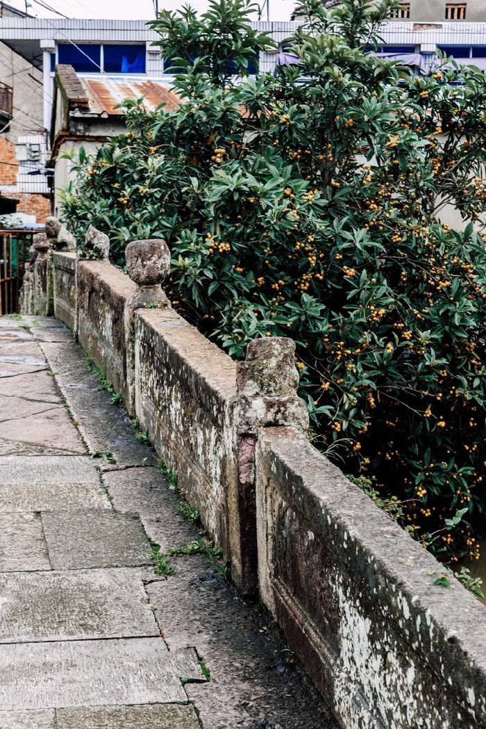 它叫“赤栏桥”,本地人唤“章安桥”。清乾隆四十五年(1780 年)重修的石碑仍立桥头。桥栏两侧各有十二支望柱,柱头石狮石猴虽已残缺,仍保持着静默的尊严。